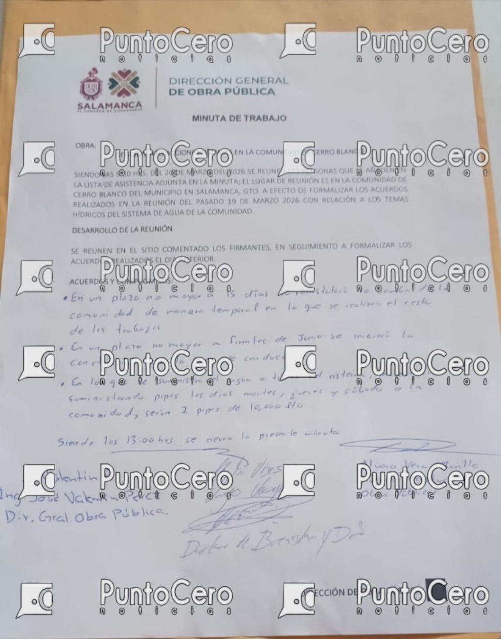 SALAMANCA, GTO. – En un ejercicio de diálogo directo entre el Gobierno Municipal y habitantes de la comunidad de Cerro Blanco, se formalizaron los acuerdos técnicos para solucionar la problemática de desabasto de agua potable que afecta a la zona. Bajo la instrucción del presidente municipal, César Prieto, funcionarios locales se reunieron con los vecinos para establecer una hoja de ruta con fechas y compromisos claros.