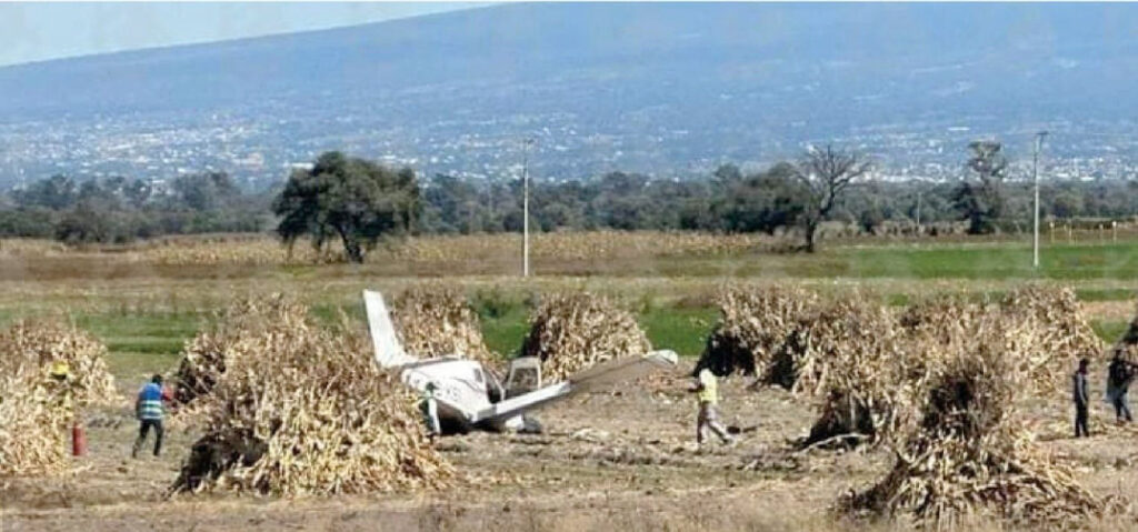 Las autoridades compartieron imágenes en las que se confirma que la avioneta tenía la matrícula XB-RRN y el accidente ocurrió en un campo de cultivo.
