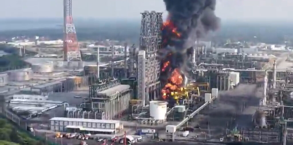 “El director de Pemex y el garente de la refinería Olmeca informaron que el incendio se encuentra localizado exclusivamente en un área de almacenamiento de coque y está controlado”, informó en esas redes sociales.