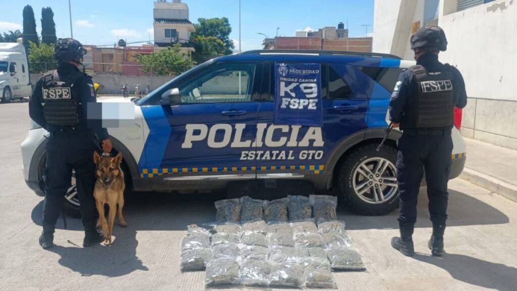 En León, un Oficial Canino de la Unidad K9 de la Secretaría de Seguridad del Estado, detectó más de 14 mil dosis de marihuana ocultas en paquetes de paquetería, como parte de las acciones de la estrategia CONFIA.
