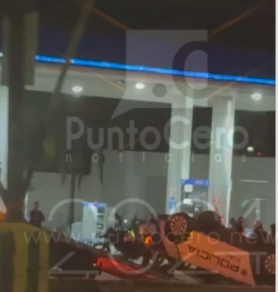 Un aparatoso accidente protagonizado por una patrulla de la Policía Vial ocurrió la noche de este domingo en el Libramiento José María Morelos, a la altura del Fraccionamiento Amberes, en León. La unidad impactó contra un poste de luz y varios señalamientos viales antes de volcar, dejando al oficial que conducía con heridas de consideración.