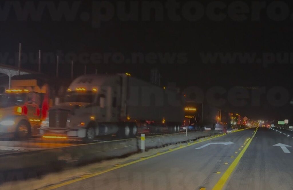 Durante esta noche, largas filas de vehículos particulares y de carga permanecen varadas sin posibilidad de avanzar, mientras el flujo vehicular continúa acumulándose en la zona.