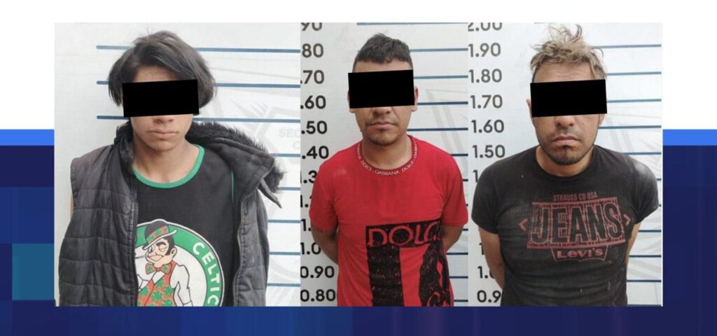 Las personas detenidas fueron identificadas como Adrián, de 19 años; Eduardo, de 30 años; y Leonardo, de 36 años, quienes además estarían relacionados con otros robos cometidos en tiendas de conveniencia y gasolinerías del municipio.