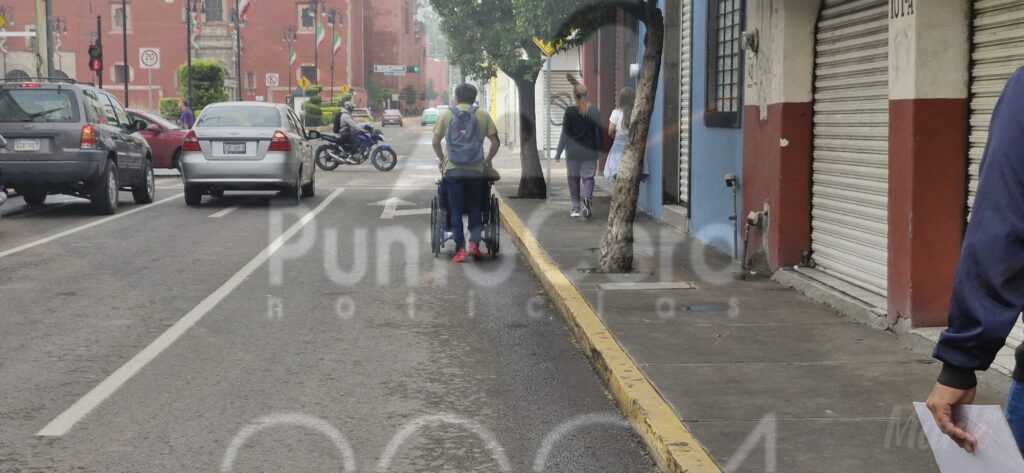 «ES UN PROBLEMA, PORQUE TENEMOS UNA PERSONA CON DISCAPACIDAD,  LA MOVEMOS EN SILLA DE RUEDAS, TENEMOS QUE USAR ESTE CAMINO PORQUE LA LLEVAMOS A HACER UNOS TRÁMITES… PERO LAS BANQUETAS ESTÁN MAL, POR ESO NOS BAJAMOS A LA CALLE PARA PODER CIRCULAR».