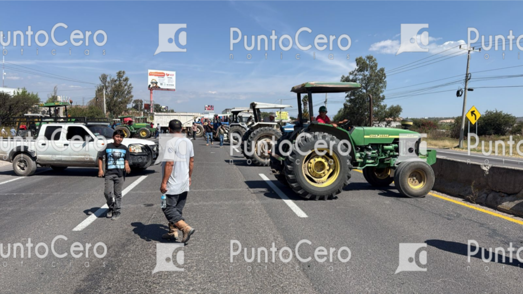 Agricultores mantienen un bloqueo total sobre la carretera federal Silao-Irapuato, a la altura de la comunidad La Caleta, con unos 50 tractores atravesados, maquinaria agrícola y campesinos dispuestos a todo para exigir precios de garantía de 7,200 pesos por tonelada de maíz y 6,000 por tonelada de sorgo.