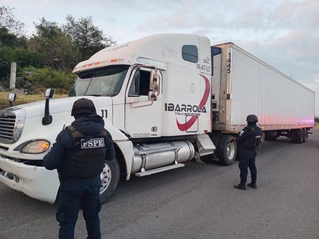 Un tractocamión cargado con carne para hamburguesas, valuada en más de 5 millones de pesos, fue recuperado durante un operativo conjunto entre las Fuerzas de Seguridad Pública del Estado (FSPE) y la Guardia Nacional en este municipio.