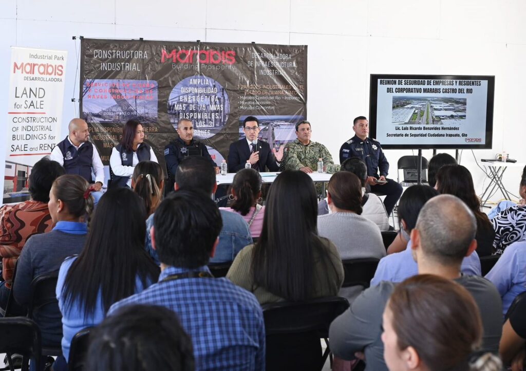 Durante el encuentro, llevado a cabo este martes, participaron representantes de la Secretaría de la Defensa Nacional (SEDENA), Fuerzas de Seguridad Pública del Estado de Guanajuato, líderes comunales y del sector educativo, así como empresas del parque industrial Castro del Río.