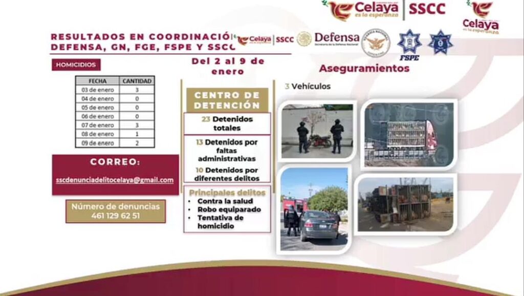 Reportan disminución en delitos de alto impacto en Celay
