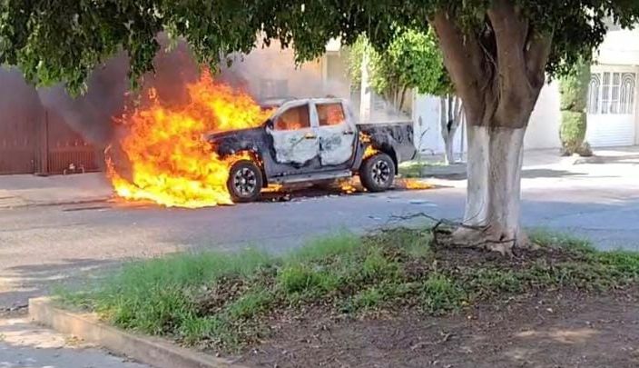 Dos camionetas resultaron dañadas tras un incendio presuntamente provocado en la colonia Valle del Real, en Celaya.