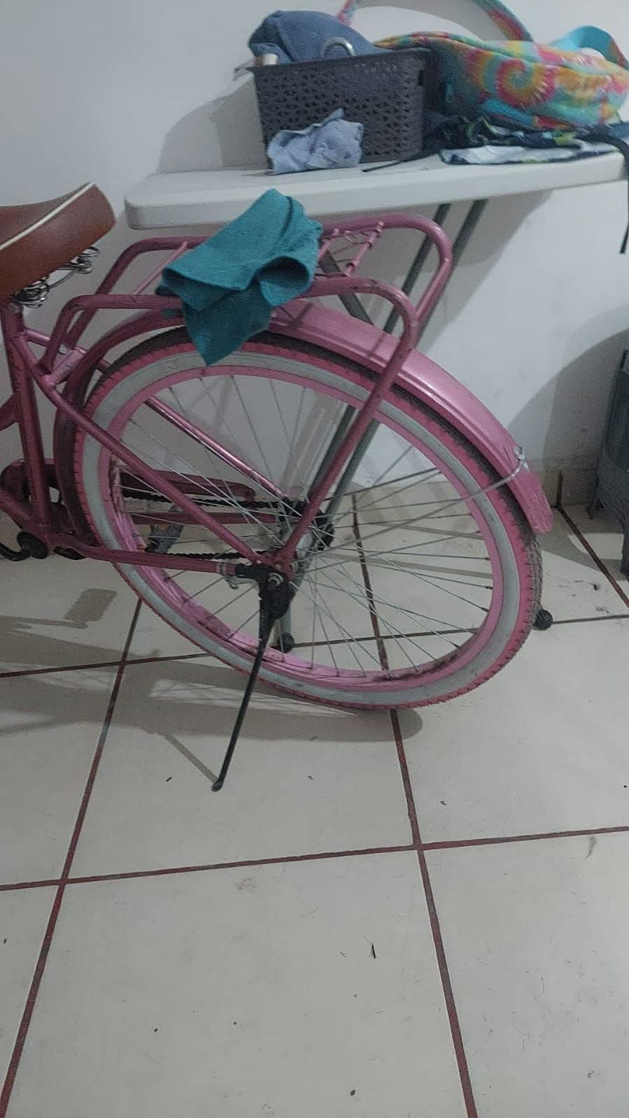 La unidad robada es color rosa, con llantas rosas con franja blanca, cuenta con una canasta en la parte frontal y tenía colocada una cadena tipo manguera. La víctima señaló que apenas hace aproximadamente 15 días había cambiado las llantas, por lo que se encontraban prácticamente nuevas.
