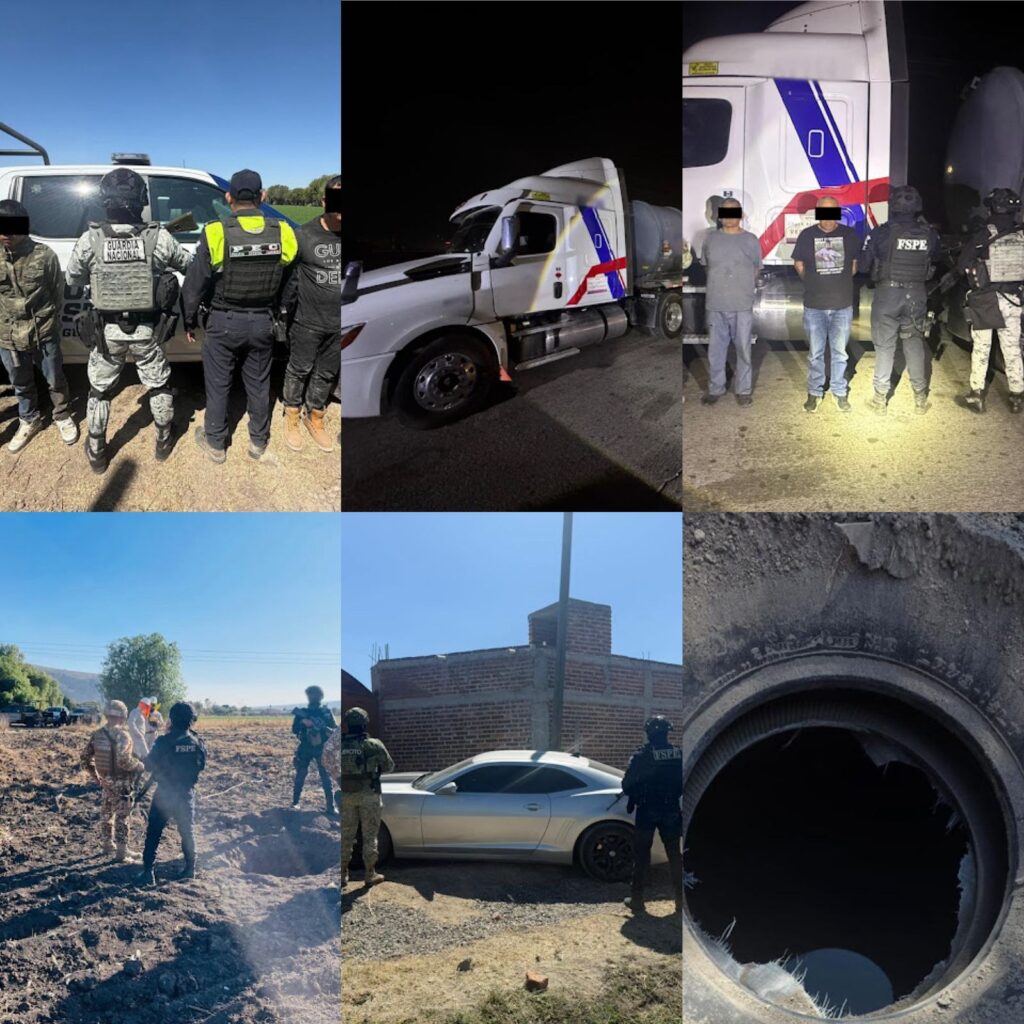 Operativos coordinados entre la Secretaría de Seguridad y Paz y la Secretaría de la Defensa Nacional permitieron el aseguramiento de 123 mil litros de hidrocarburo y la detención de cuatro personas en acciones realizadas en los municipios de Celaya y Apaseo el Grande.