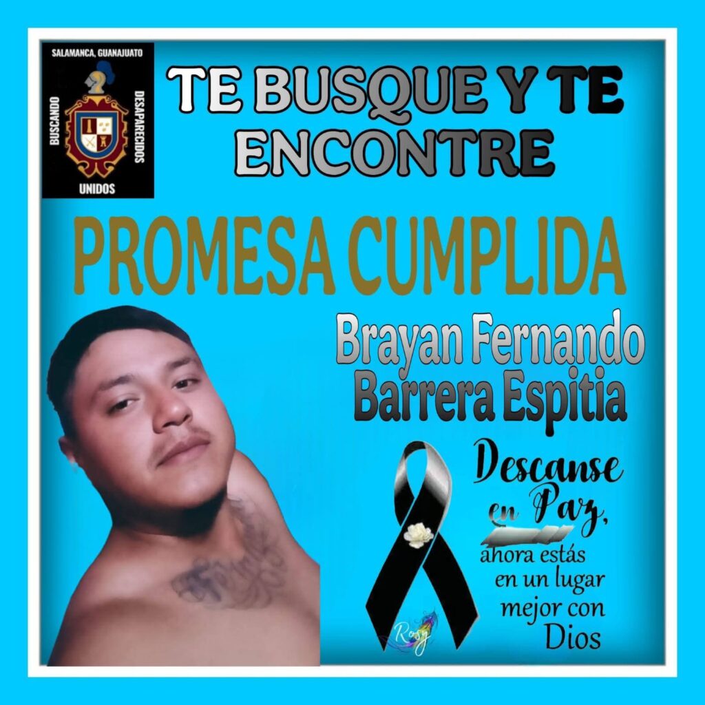 La vocera del colectivo, Alma Tapia, informó que la víctima fue identificada como Bryan Fernando Barrera Espitia, quien había sido visto por última vez en febrero de este año en la misma comunidad donde se realizó el hallazgo.