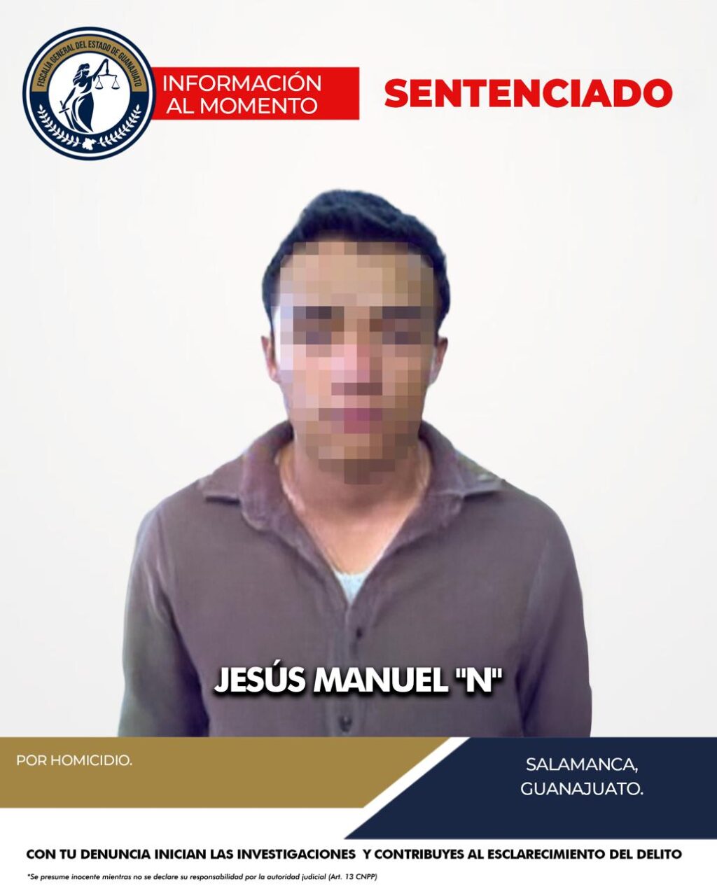 GUANAJUATO, GTO., 11 DE OCTUBRE DE 2025. La Fiscalía General del Estado de Guanajuato (FGEG) obtuvo una sentencia condenatoria de 27 años de prisión contra Jesús Manuel «N» por el delito de homicidio calificado ocurrido en Salamanca en septiembre de 2022.