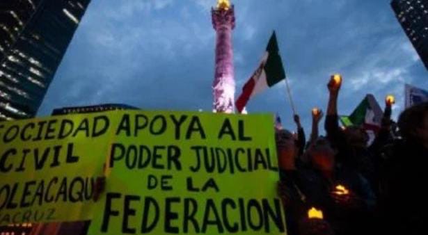 • Trabajadores del Poder Judicial iluminan el Ángel de la Independencia “para que la justicia no muera”