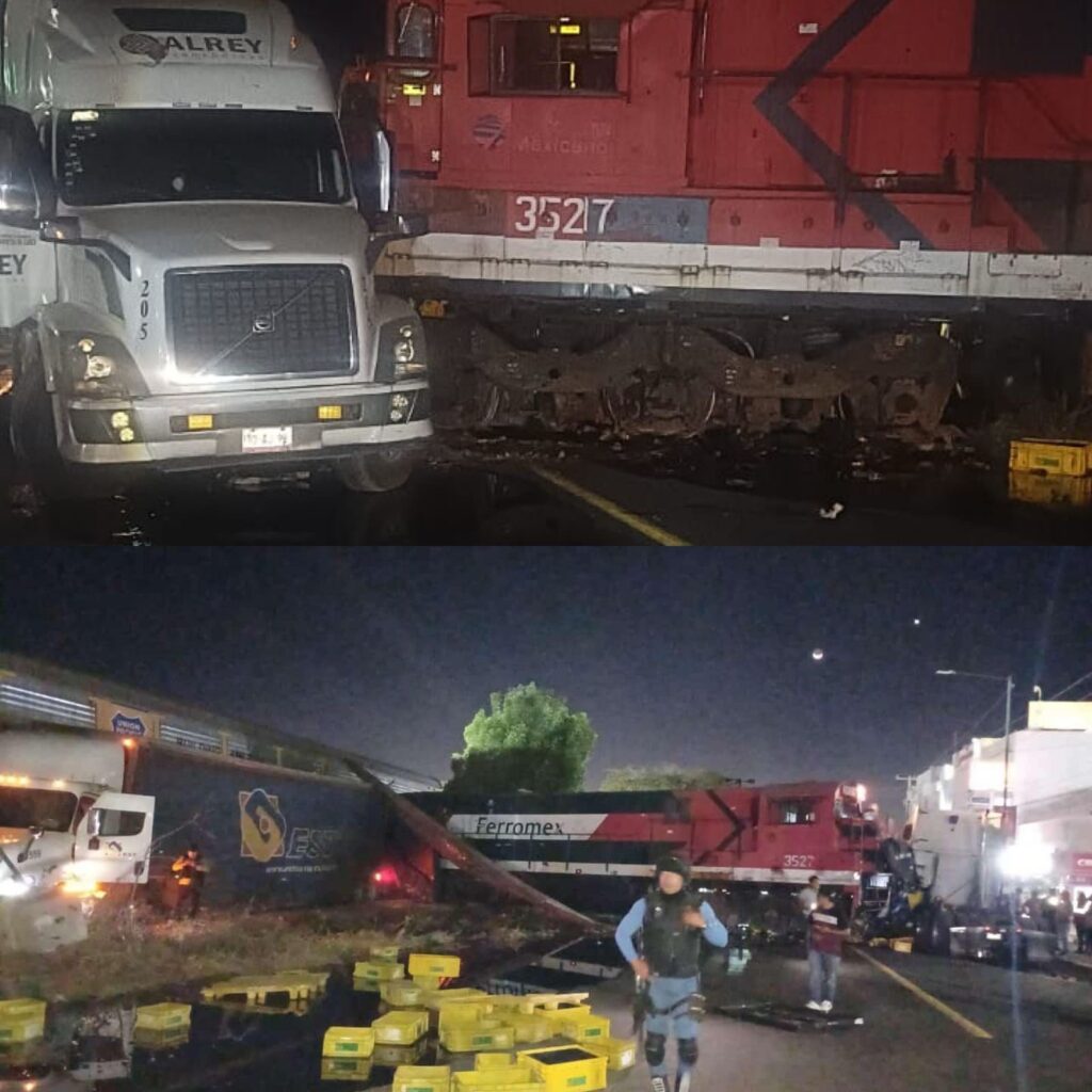 El accidente ocurrió la noche de este sábado, cuando el pesado vehículo fue impactado por el ferrocarril, lo que presuntamente provocó el descarrilamiento de la locomotora.