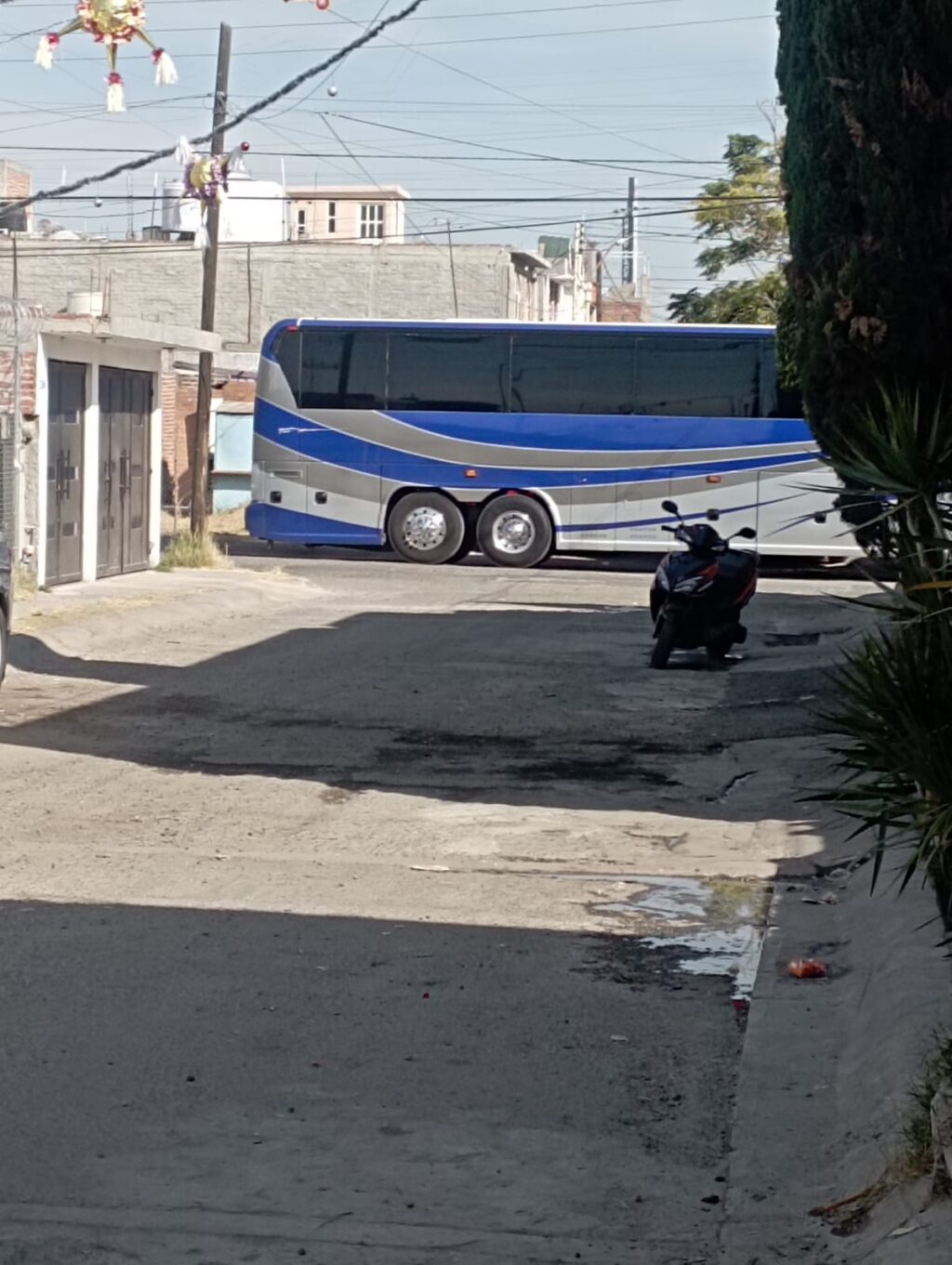 «Son 4 camiones de pasajeros que se estacionan en la entrada del fraccionamiento, el problema es que estorban en las calles, además siempre se la pasan tomando y lavando los camiones en la calle, y estorban».