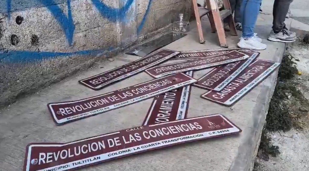 Vecinos de la colonia La Cuarta Transformación, ubicada en el municipio de Tultitlan, Estado de México, protestaron y retiraron este miércoles los nombres impuestos en las calles por el gobierno municipal a principios de diciembre.