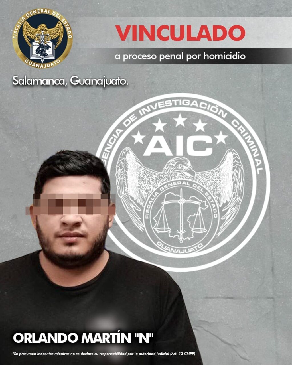 La Fiscalía de Guanajuato cumplimentó orden de aprehensión contra ORLANDO MARTÍN “N”, inculpado en el delito de homicidio, en la ciudad de Salamanca.