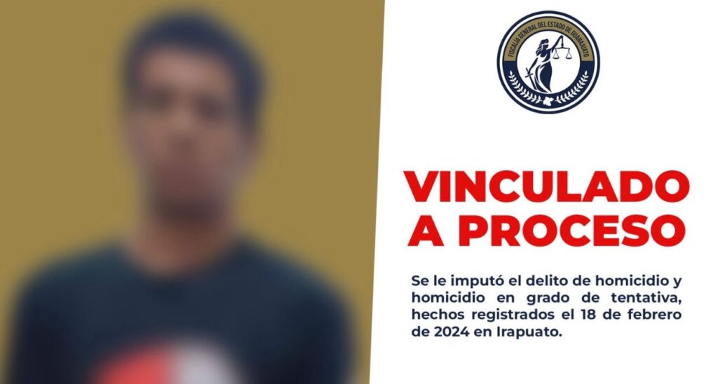 La Fiscalía General del Estado de Guanajuato informó que fue vinculado a proceso un individuo acusado de participar en un ataque armado registrado en la ciudad de Irapuato.