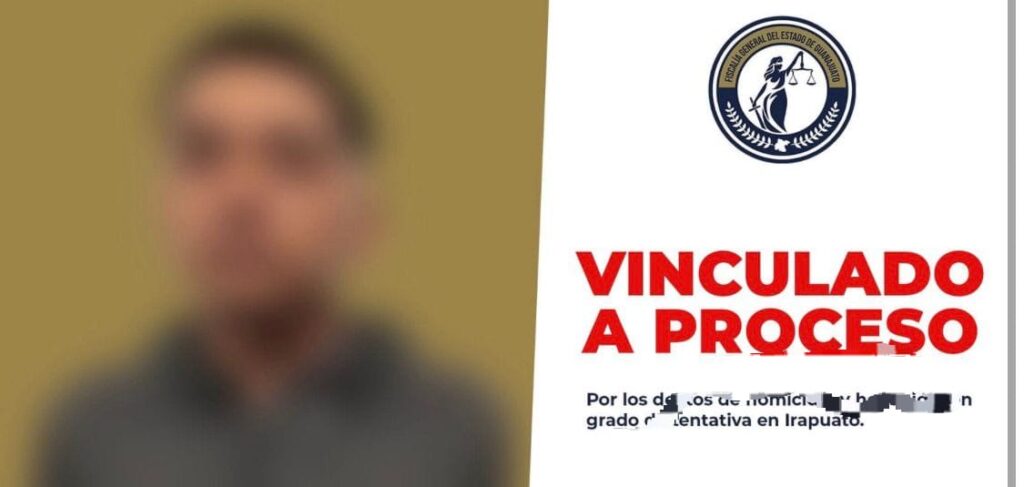 La Fiscalía General del Estado de Guanajuato informó que un hombre identificado como Nicolás Antonio, fue vinculado a proceso por los delitos de homicidio y tentativa de homicidio, tras hechos registrados en Irapuato. La autoridad ministerial presentó los datos de prueba ante el juez.