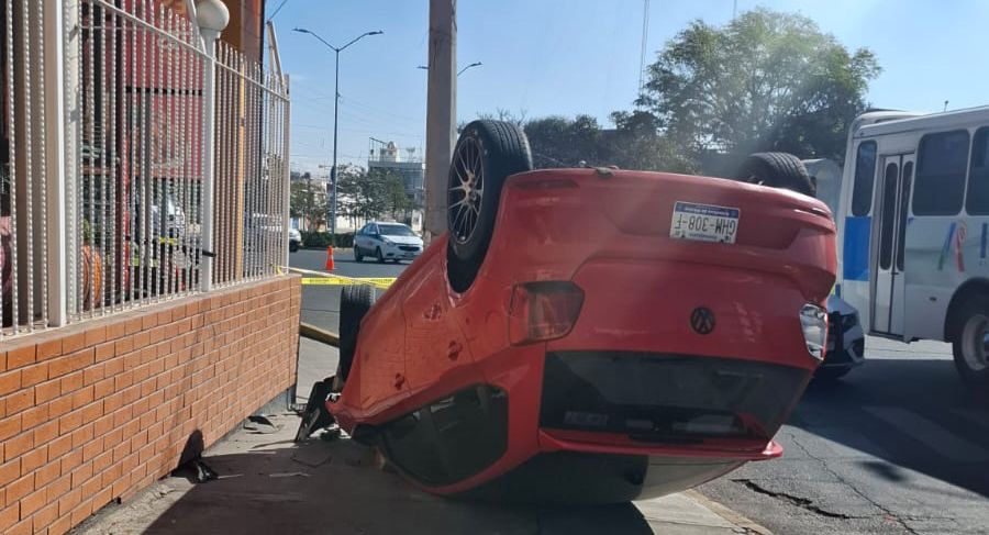 El conductor de un auto Polo de la marca Volkswagen volcó en pleno bulevar Díaz Ordaz.